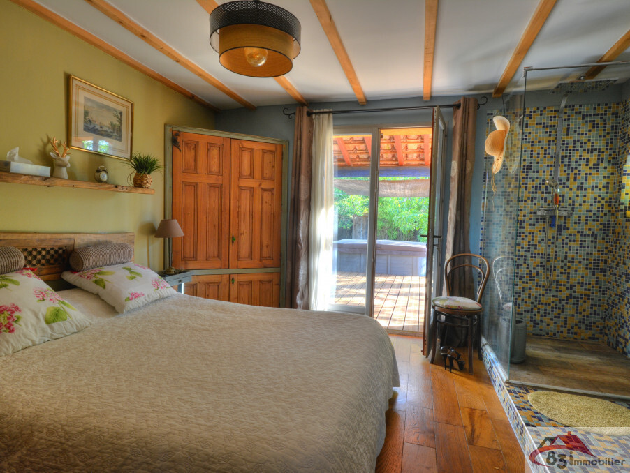 Pour vos activités personnelles, professionnelles ou locatives, un spacieux cabanon en bois de 45m² avec un sol en travertin, isolé et climatisé complète l'ensemble.