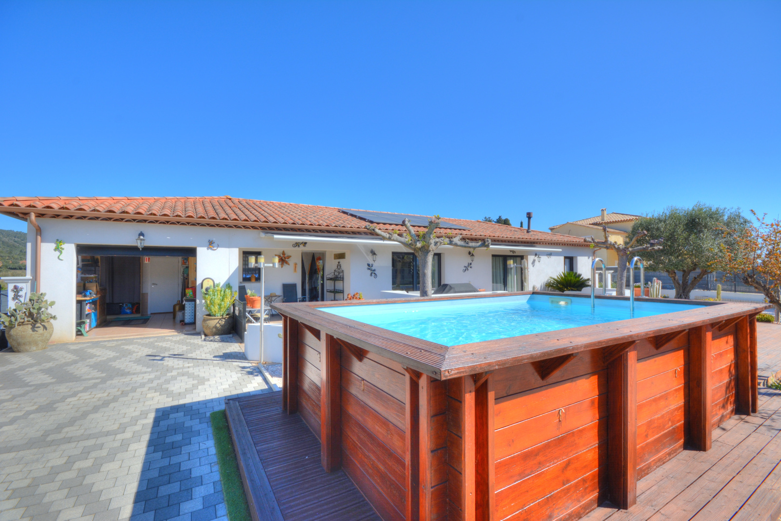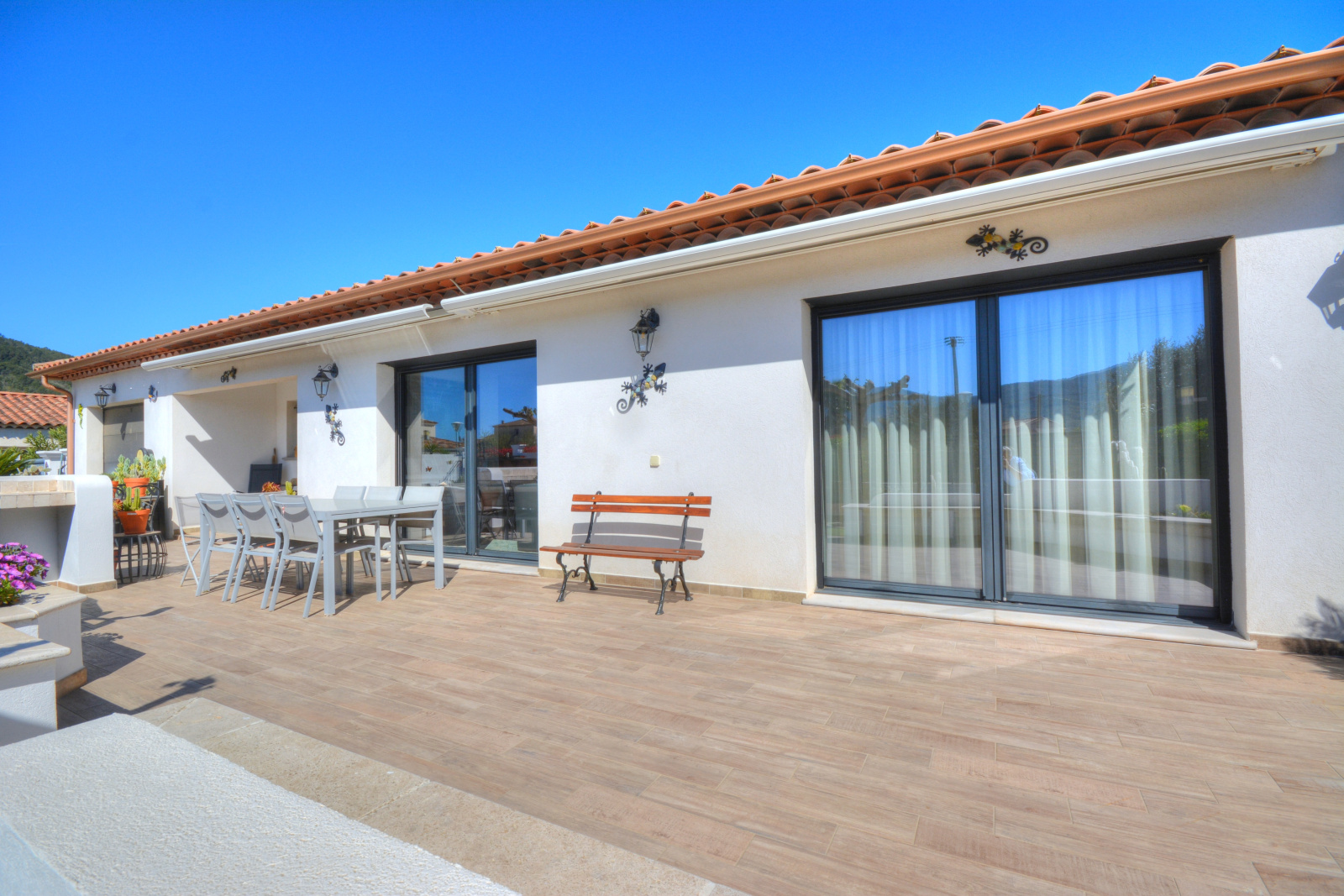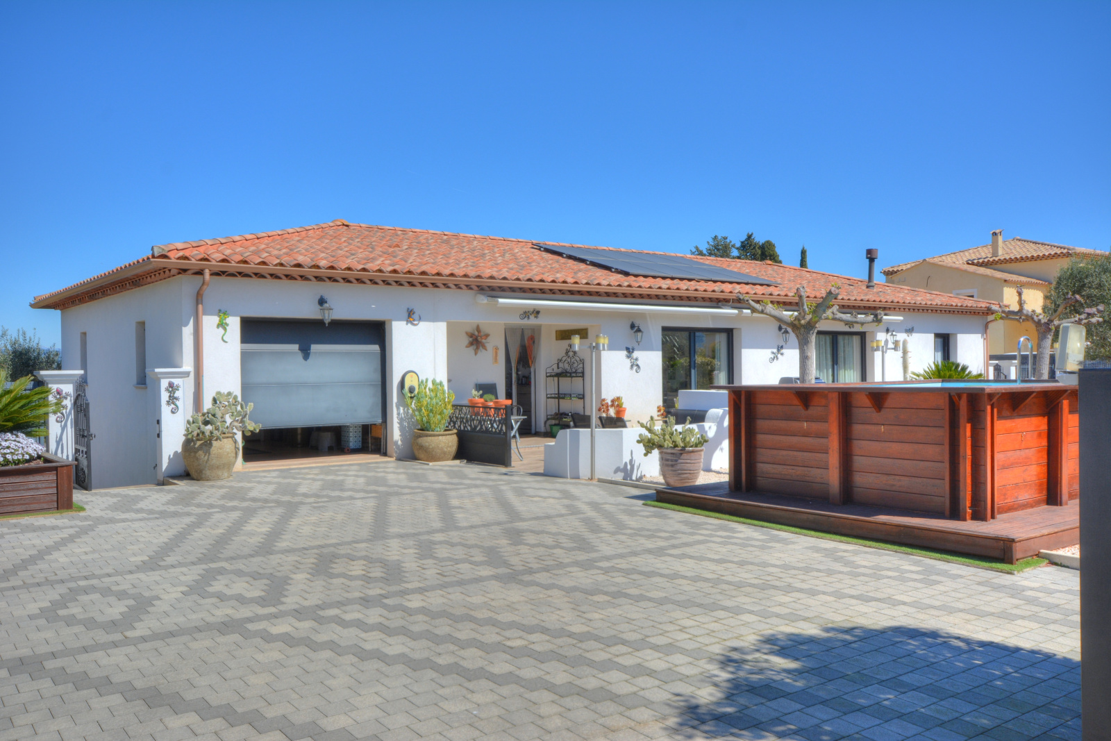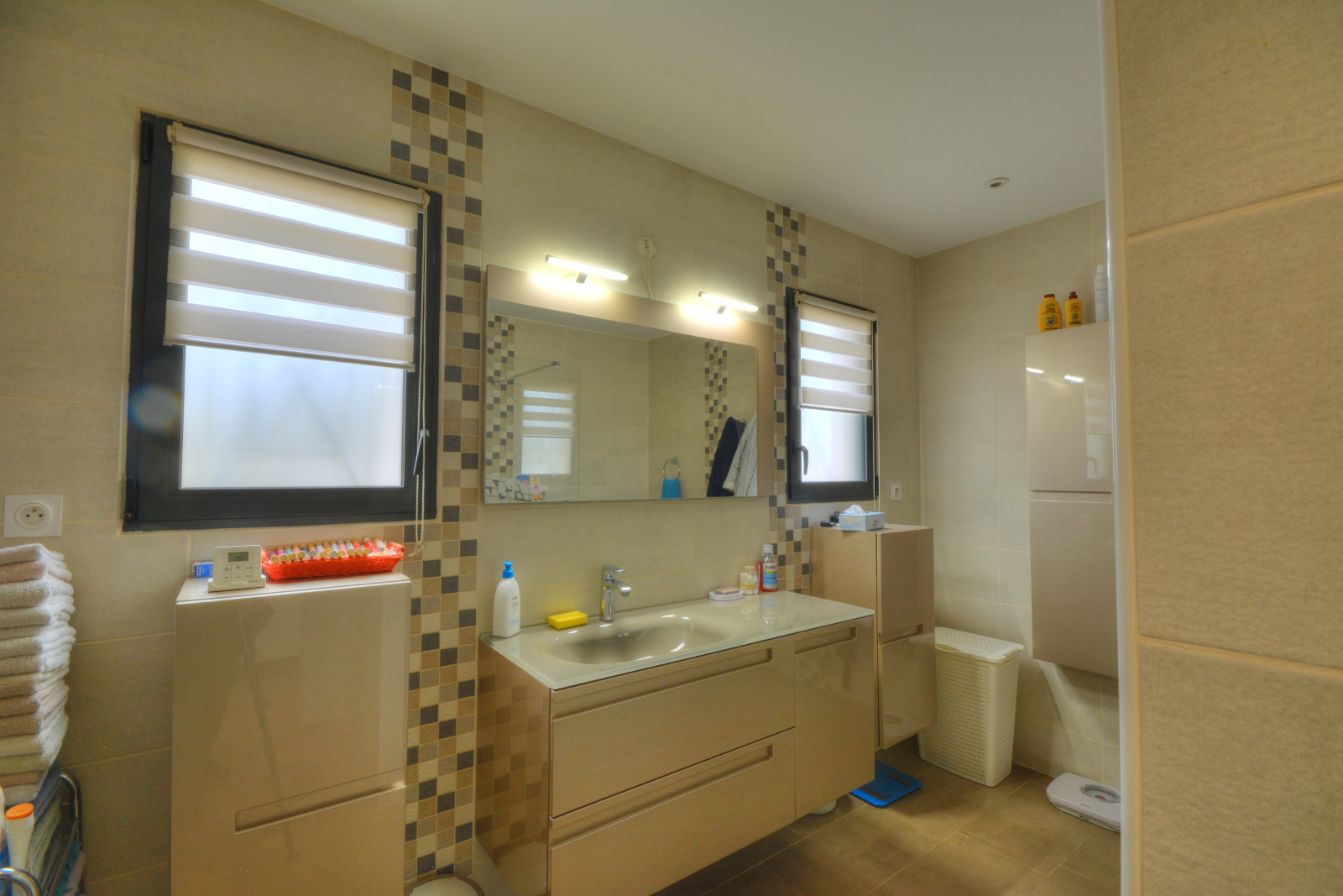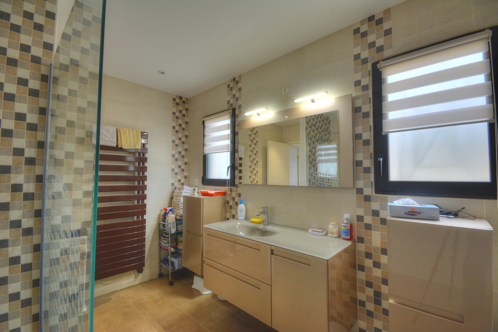 Matériaux de qualité: 3 grandes baies vitrées en aluminium à galandage, menuiseries double vitrage aluminium, volets roulants électriques en aluminium, chauffe-eau thermodynamique,...