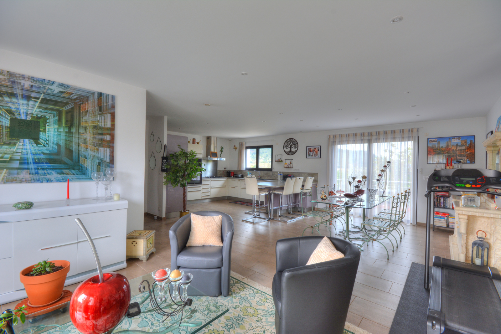 GONFARON: Située dans un quartier calme, cette magnifique villa de plain-pied construite en 2016 offre un cadre de vie confortable et lumineux, sur un terrain de 933 m² parfaitement entretenu.